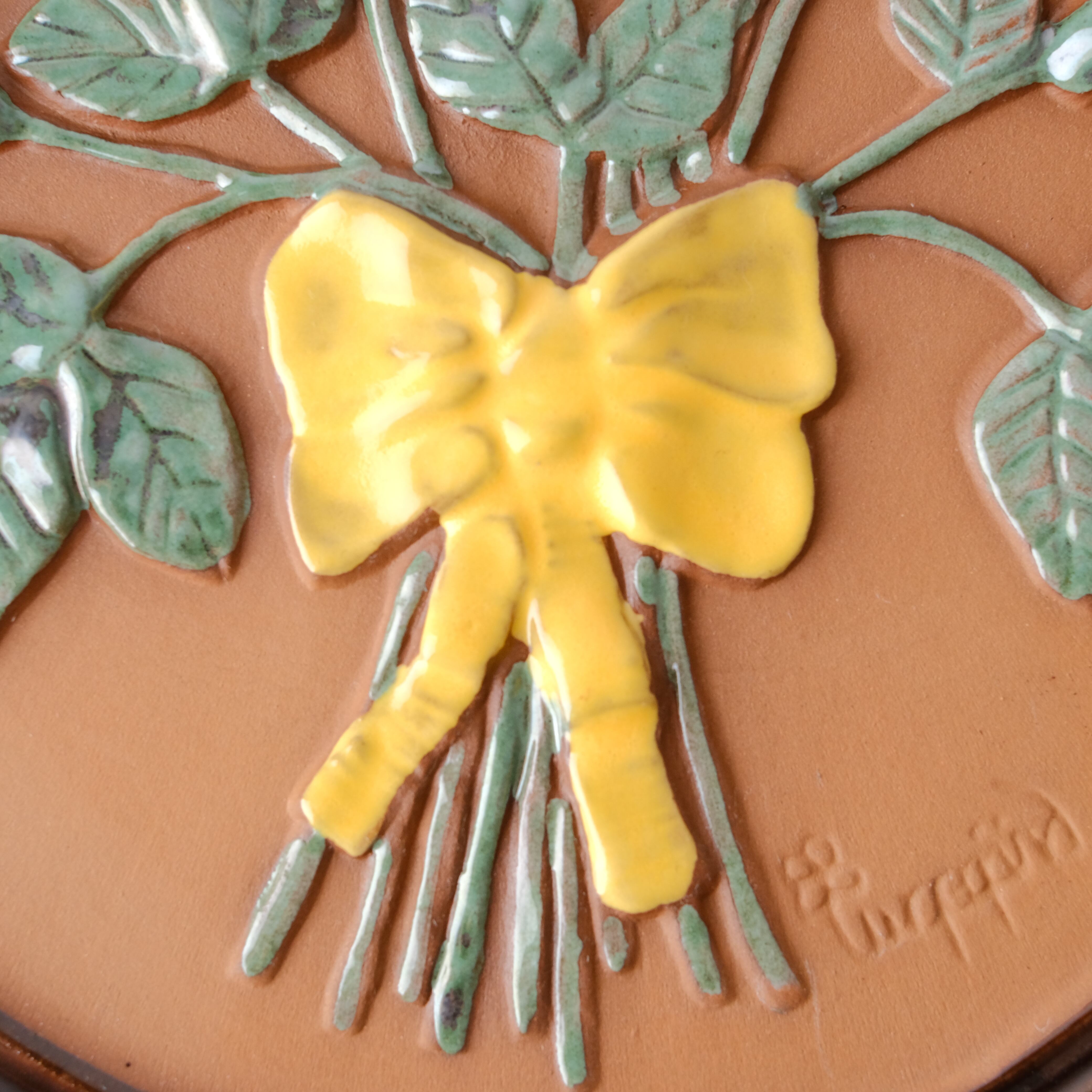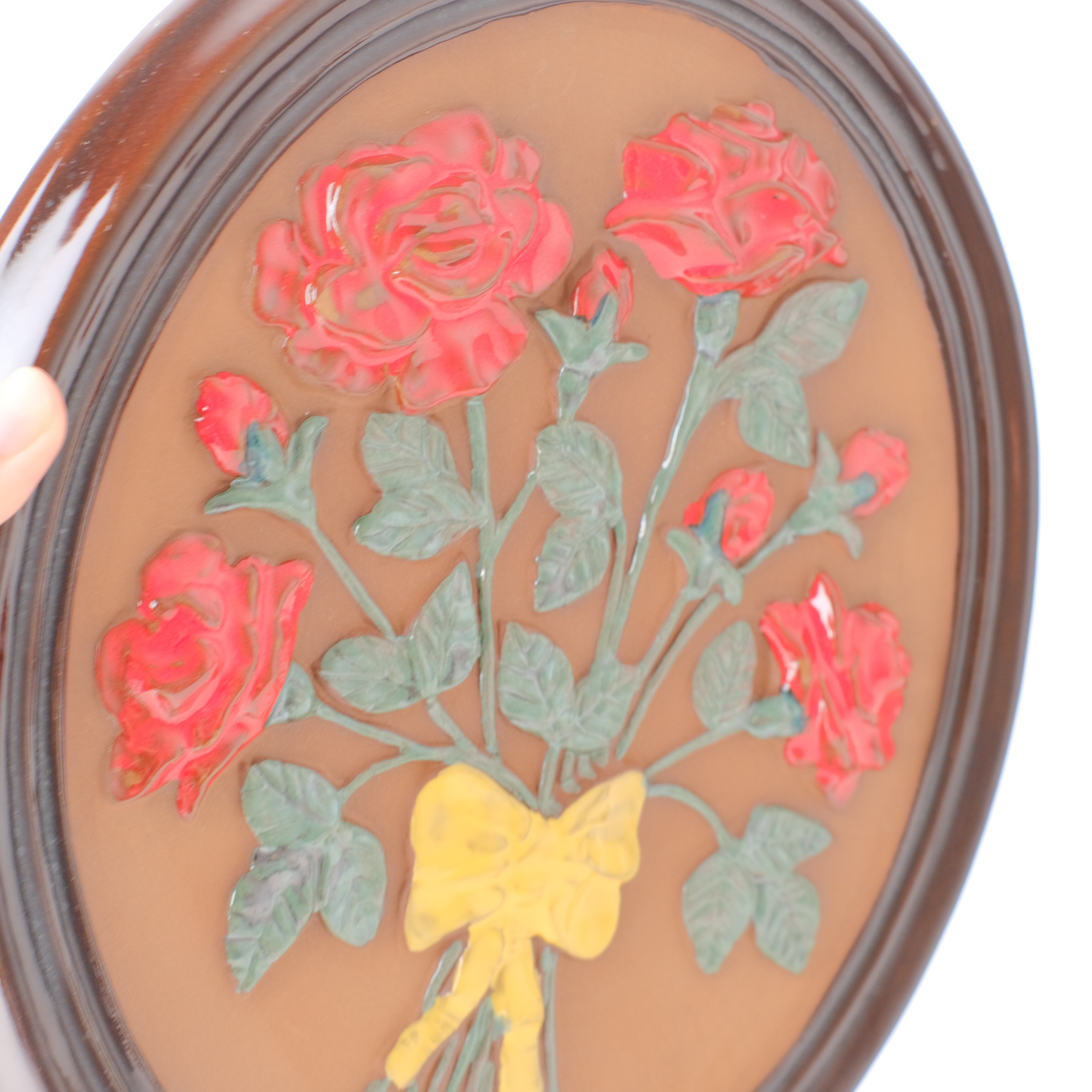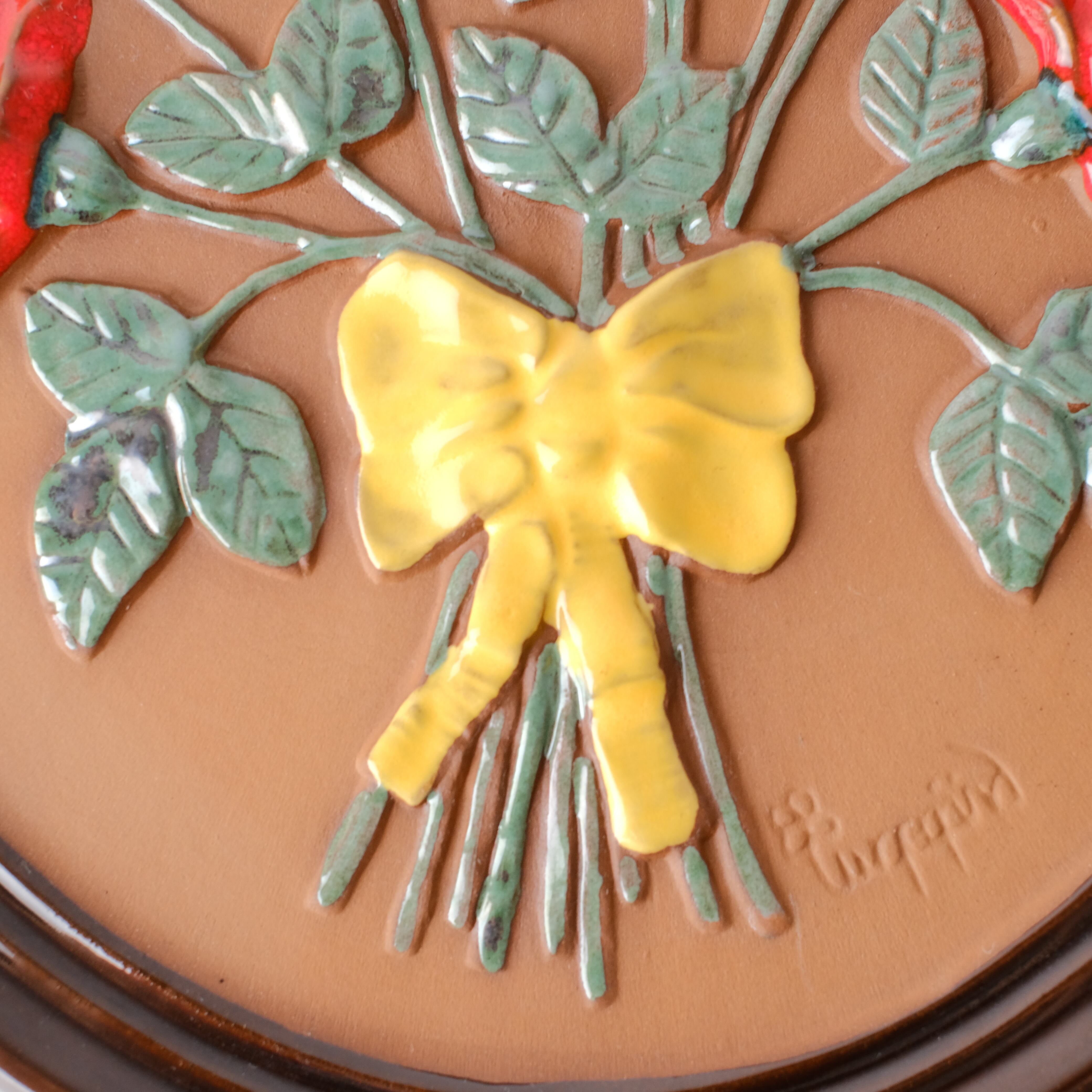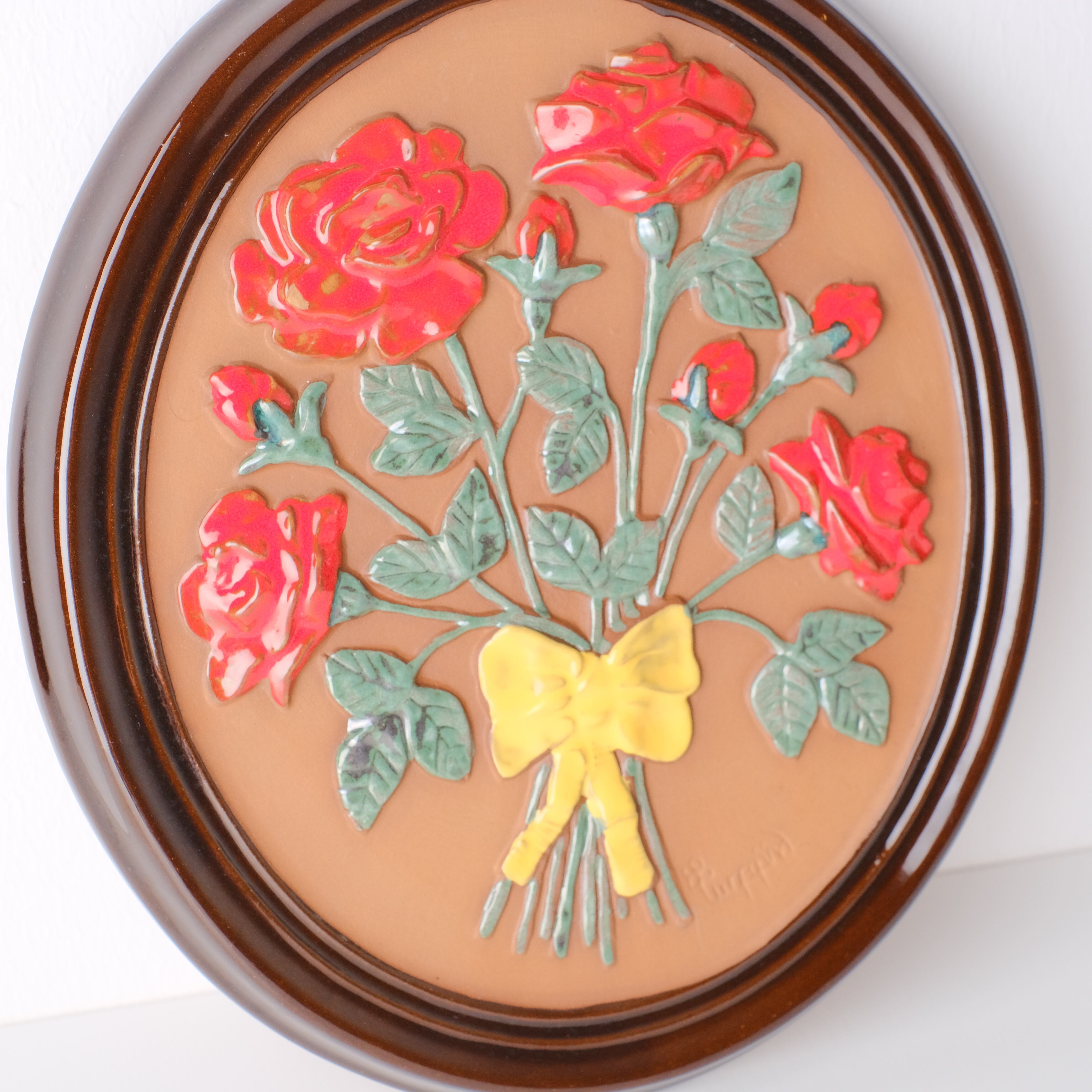 こちらは大きなサイズで、バラの花束の陶版です。赤い薔薇に黄色のリボンがなんともキュート