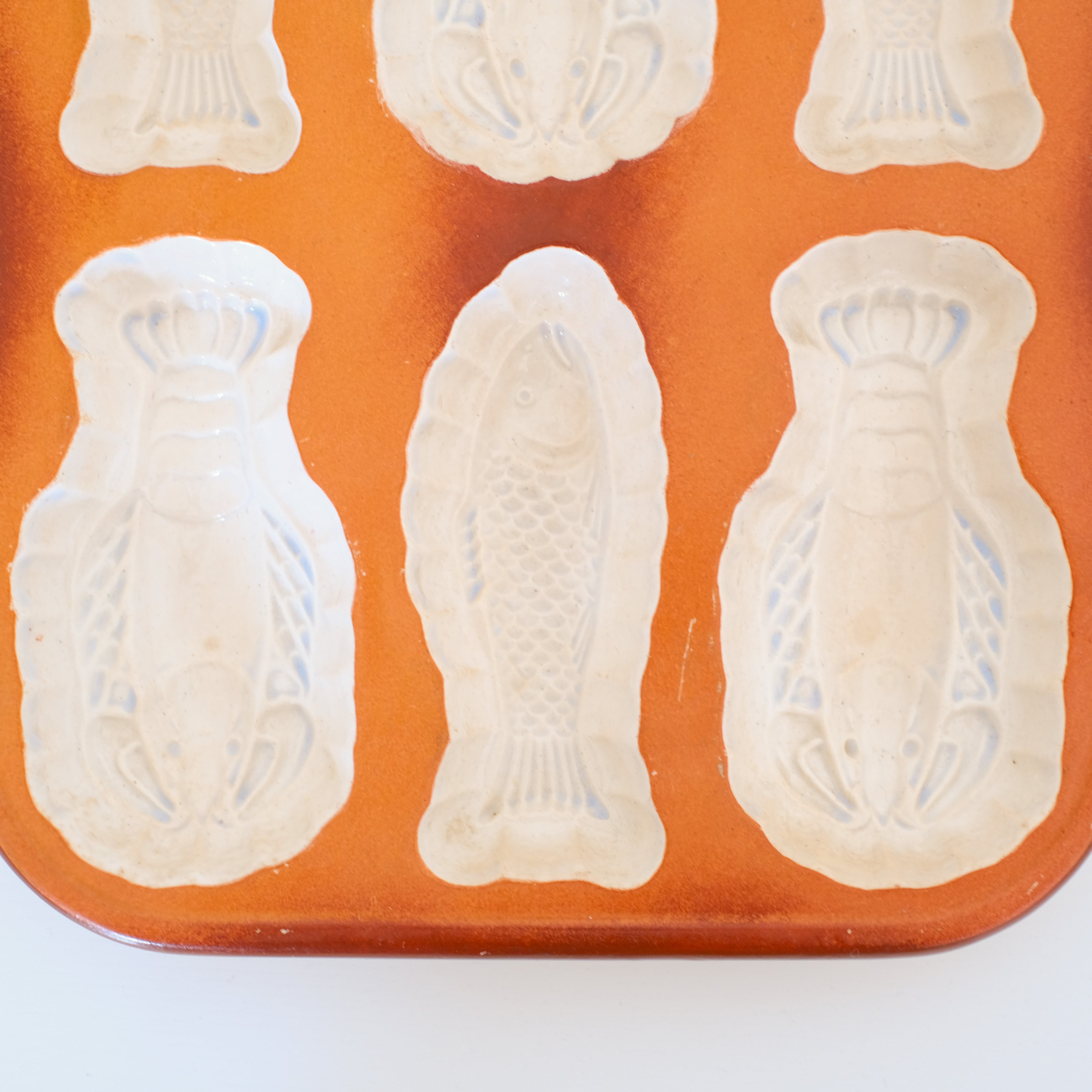 スウェーデンの食文化に馴染みの深い、ニシンとザリガニの型が交互に並んでいます